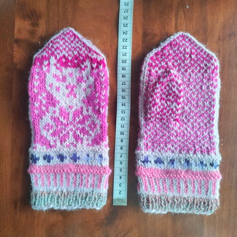 Itse neulottuja lapasia, 7-veljestä langasta. Siniset myyty.
