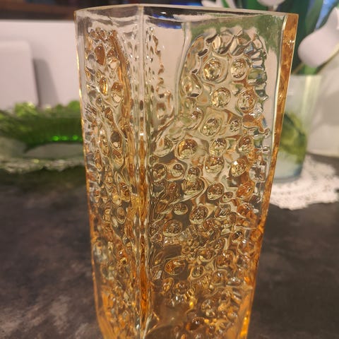 Mäntyharjun Lasi Oy:n tuotantoa, suunnittelija Eero Rislakki, Nina-sarjan jälkiruokakulho. Täysin ehjä, yksinäinen kulho, joka etsii uutta kotia.