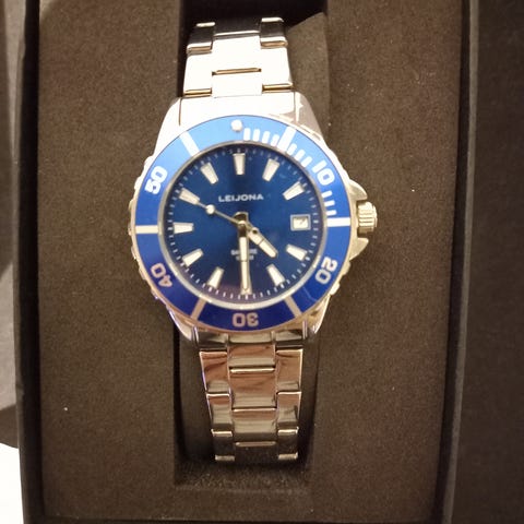 Jalkapalloaiheinen leijona poikien ja miksei tyttöjenkin rannekello tarrahihnalla, uudella paristolla.