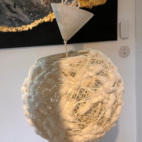 Siisti, ehjä, toimiva kattovalaisin jalkapallokuviolla. Lamppuun käy kolme kynttilälamppua.