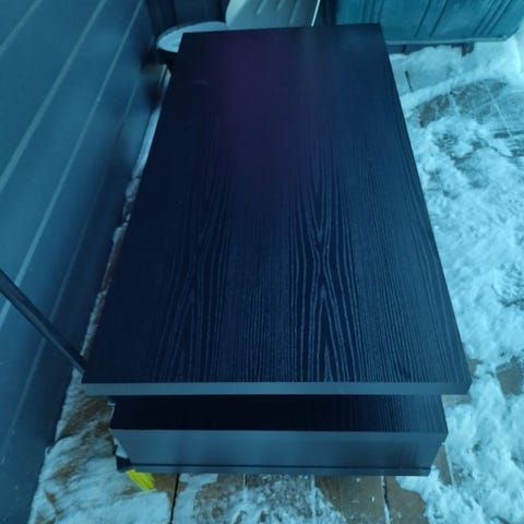 Vanha sohvapöytä lasitasolla, saa hakea kahvipapu paketilla. Tilanpuutteen vuoksi luovutaan.