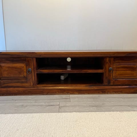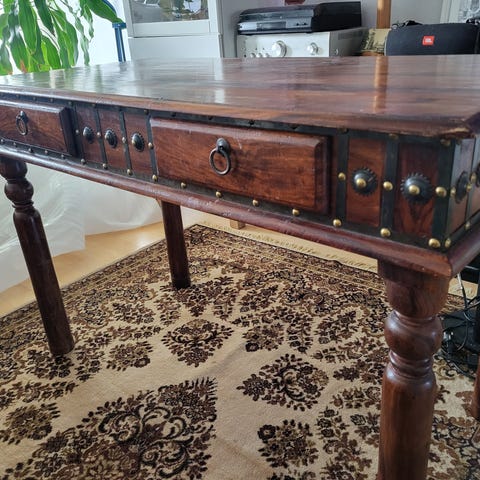 Massiivipuusta valmistettu tukeva olohuoneen pöytä.
