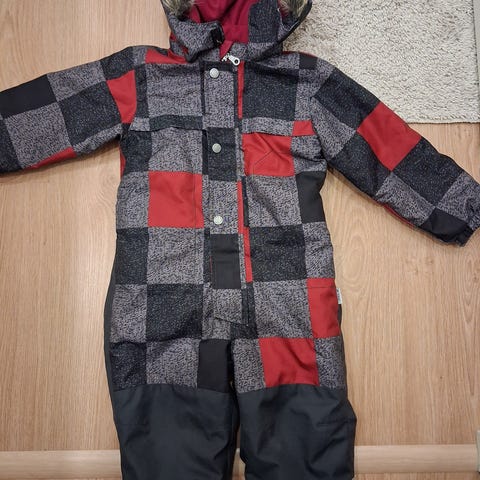 Name it Kirjava talvihaalari, koko 92, Haalarissa on irrotettava huppu, jossa on tekoturkisreunus. Hihansuissa ja lahkeissa on joustavat resorit, ja lahkeissa on myös ehjät jalkalenkit. Vetoketjun aluetta on vähän jyrsitty, näkyy kuvissa, muuten ehjä ja siisti haalari, parilla lapsella jo käytössä ollut.