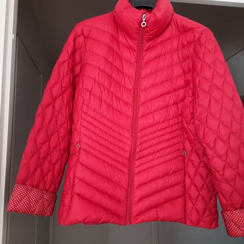 Ellos Classic Woman duffeli vilkasekoitekangasta. 42. Ohut tikkivuori, huppu, vetoketju ja pompulakiinnitys. Päällitaskut.
