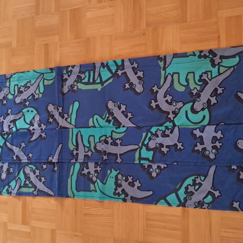 Marimekko lasten verho, jossa on eläinaiheinen kuviointi (Karkumatka). Verhon värit ovat moniväriset, ja materiaali on kevyt kangas. Sopii lastenhuoneeseen tai tilaan, jossa halutaan leikillinen ja värikäs sisustuselementti. Tosi hyvässä kunnossa, vähän ryppyjä tullut säilytyksessä. Laskosmekanismi erinomainen, toimii hyvin. Seinäkiinnikkeet ovat ehjät ja tulevat mukaan. Vain nouto.