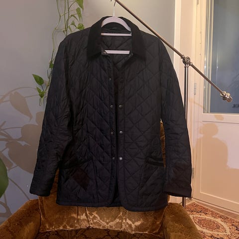 Barbour takki tumman sinisessä värissä, koko EU40 mutta istuu kuten normaali S kokonen.