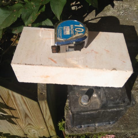 kuvan tiilikasa kaupan,osassa laastia kiinni ja osa vaurioitunut, purettu takasta
