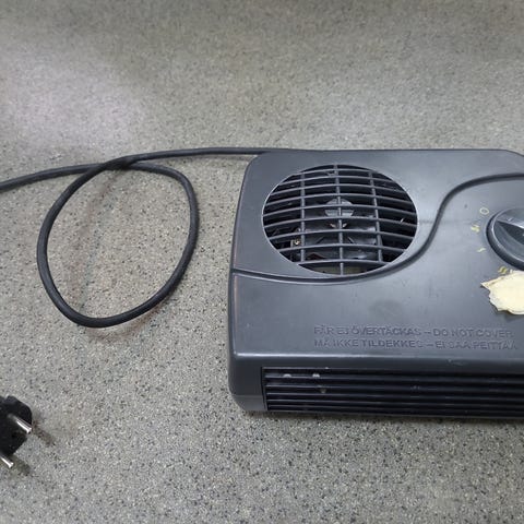 Hyvä toimiva lämmitin. 1250w. 3 toiminen, kylmäpuhallus, lämminpuhallus 1 ja 2 tehoa.