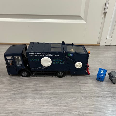 Isoin roskarekka-auto on Emek. Muuten ehjä, mutta takaovet ovat irronneet ja kadonneet. Kaksi pienempää roska-autoa ovat ehjiä. Tästä kiva roska-autosarja seuraavalle leikkijälle.