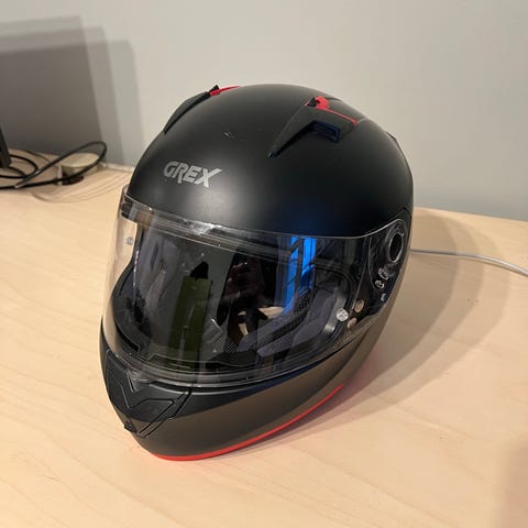 Grex G6.2 moottoripyöräkypärä, väri valkoinen, koko M (keskikokoinen), paino 1400 grammaa. Kypärä on suunniteltu suojaamaan päätä moottoripyöräilyssä.