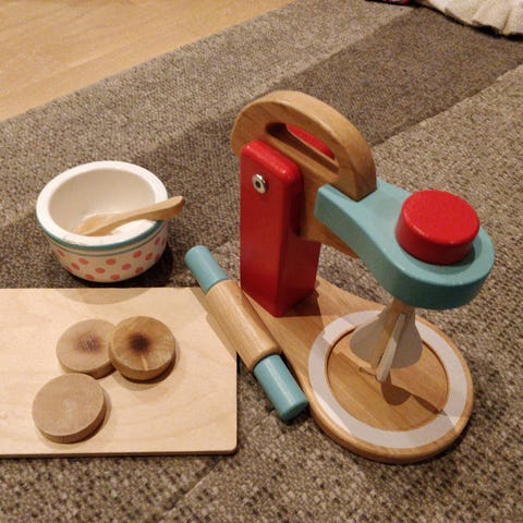 Sisältää: Tehosekoittimen, värikkäitä leikkiruokatarvikkeita, söpön mukin