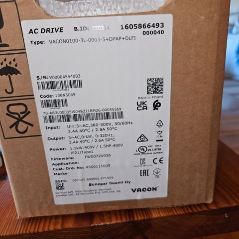Myydään kuvien mukainen taajuusmuttaja VACON 7.5Kw, käy myös 5.5kW moottoriin.