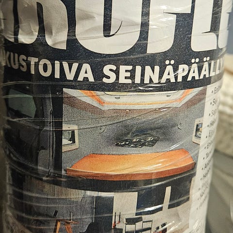Taustapuolelle liimattu 20mm rima, jotta saadaan levyä hieman seinästä irti. Näistä rimoista saa kätevästi levyt myös seinälle roikkumaan.