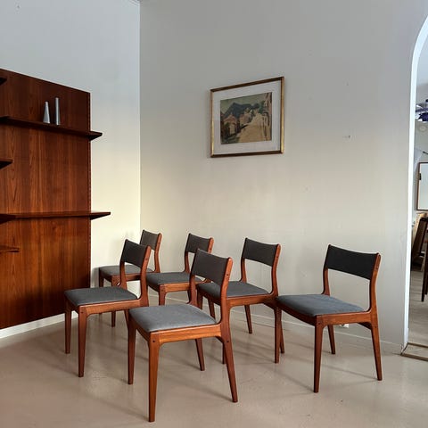 Tuolit ovat hyvässä vintage-kunnossa, vain vähäisiä ikään sopivia käytön jälkiä kuten pientä hankaumaa, naarmuja ja sävyeroja. Kaikki tuolit ovat tukevia ja täysin käyttökelpoisia. Hinta per tuoli