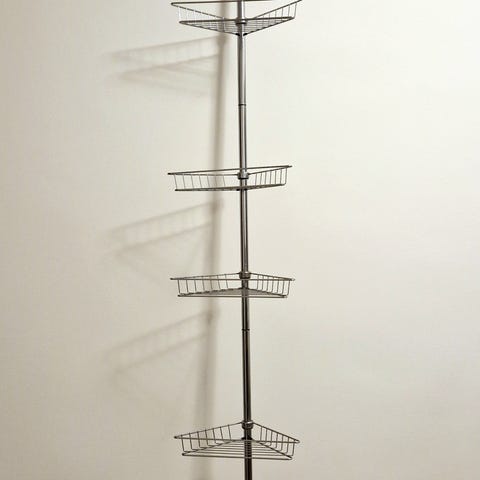 Aino Corner Shelf is designed for the bathroom. The system consists of a pole and three shelves. The height is adjustable.