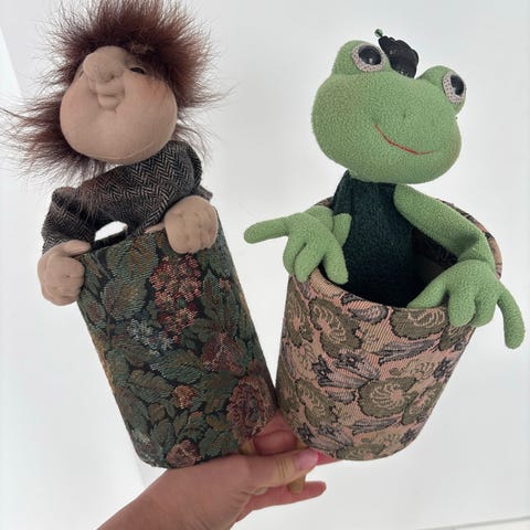 Käsinuket viidelle sormelle! Pituus 22 cm, materiaali pehmeää kangasta. Sopivat lapsen tai naisen käteen. Valmistaja saksalainen Beleduc, jonka filosofiana on "Lapset eivät leiki oppiakseen. He oppivat, koska he leikkivät".