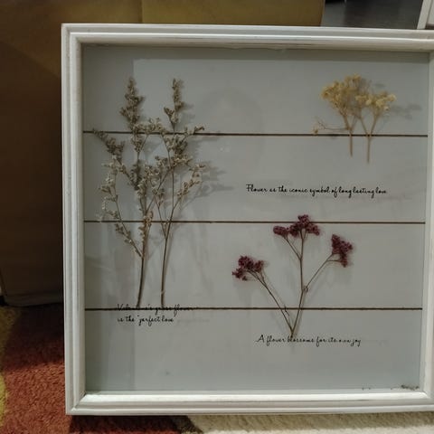 Pyöreä taulu, halkaisija 50 cm. Harmaa pohja jossa valkoisia kukkia. Jäänyt ylimääräiseksi.