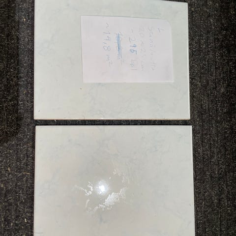 3 laatikollista = 2,43 m2 valkoista lasitettua kiiltävää seinälaattaa Bayker Edge Bianco. Laatta fasettireunainen.