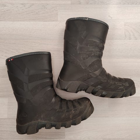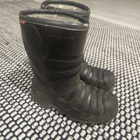 Mustat Vikingin talvikumpparit, koko 32, pohjallisen pituus 21,5cm. Yläreunan tekstiilireunus kulunut, muutoin ihan pätevät vielä.