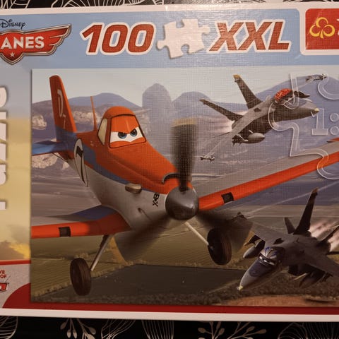 Trefl Disney Planes XXL palapeli, jossa on 100 palasta. Palapelin koko on XXL, ja se sisältää kuvia Disneyn Planes-animaatiosta. Sopii lapsille ja palapelin kokoaminen kehittää hahmottamis- ja motorisia taitoja.