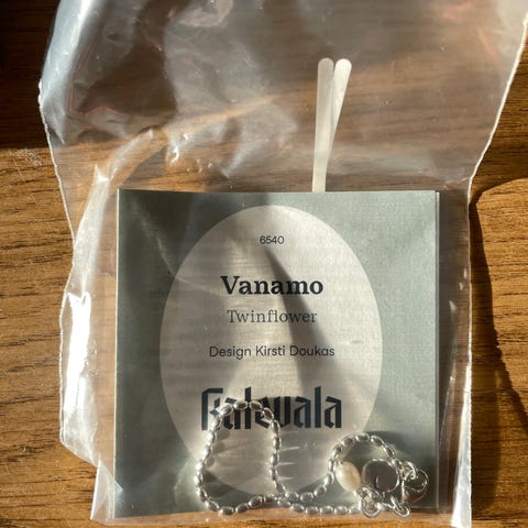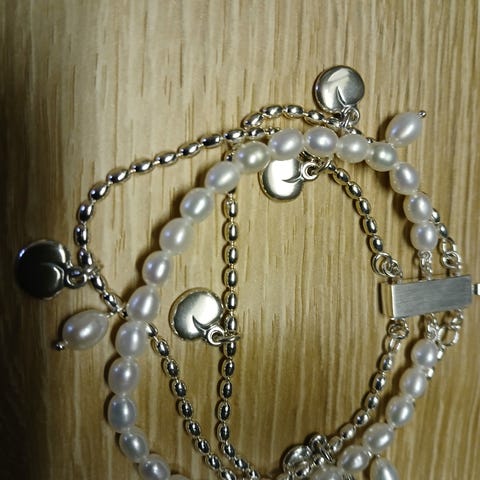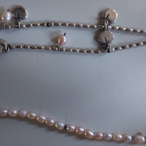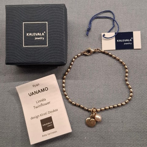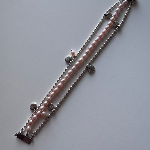 Kaunis hopeinen Kalevalan korun Vanamo rannekoru, jossa vaaleanpunaisia helmiä, pituus 18,5cm