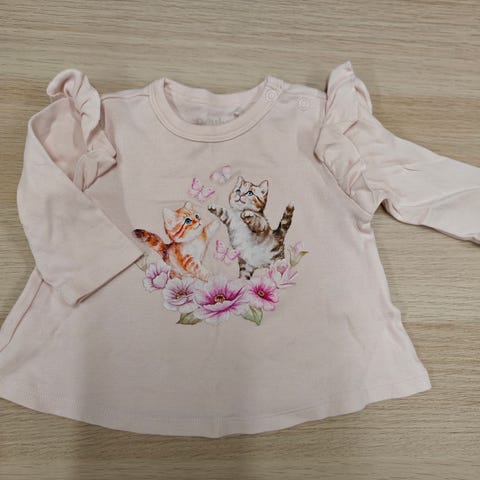 Lasten punainen kissapaita tekstillä MEOY. Ei kokomerkintää mutta mitat: