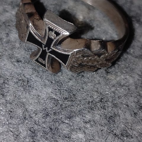 Kokoelma erilaisia sormuksia, joista kolme hopeista ( yhdessä kultainen vaakuna) yksi lentokone alumiia( Kannas 1942). Keskimmäinen myyty?
