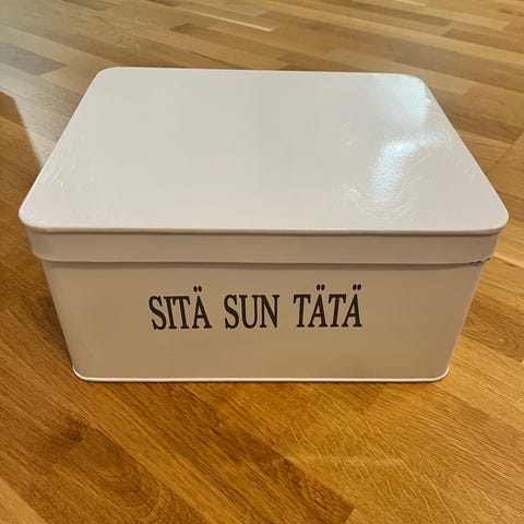 Kannellinen rasia, sopii tarjoiluun, pähkinät, karkit ym. kuin myös säilytysrasiaksi. Kunto mainio, ollut vain koristeena. Ei enää saatavilla ainakaan Suomesta. Leveys 18cm