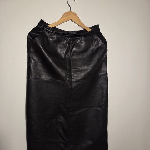 Kaunis nahkahame, vintage Kestilä. Kokomerkintää ei näy, mutta arvelen kooksi xs-s. Vyötärö 34 cm× 2. Hameen pituus noin 57 cm. Pieniä käytön jälkiä on (kuvat), mutta yleisilme siisti eivätkä jäljet juuri käytössä näy. Huomioitu hinnassa. Laadukas pehmeä nahka. Vyön saa mukaan, se ei ole nahkaa, mutta sopii väriin.