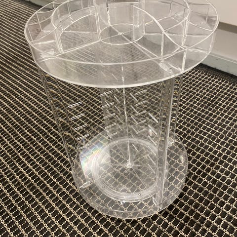 Myydään ehjä, hopeanvärinen koruteline. Merkki: Umbra. Ostettu aikoinaan Stockmannilta. Kuvissa olevat korut eivät kuulu kauppaan. Vain nouto Metsokankaalta.