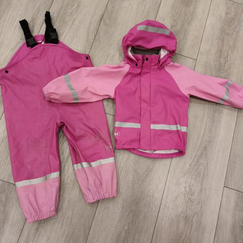 Hyväkuntoinen ja ehjä sade/kura-asu taaperolle.