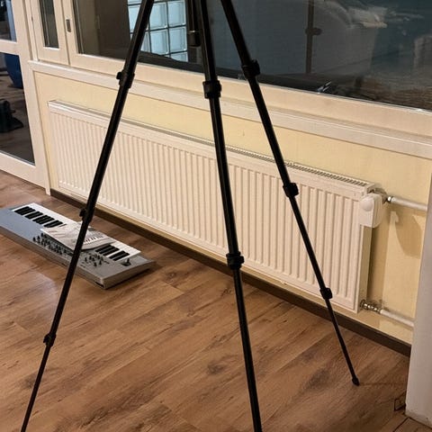 Manfrotton laadukas jalusta. Järeää tekoa, eli pystyy kannattelemaan painavammankin kameran ja objektiivin. Korkeimmillaan pituus 1,8 metriä.