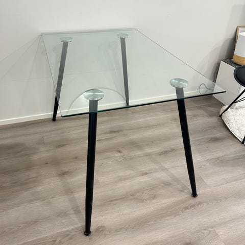 Myydään hyvässä kunnossa oleva lasinen ruokapöytä ja 4 harmaata tuolia. Yhdessä tuolissa rasvaläikkä mutta saa oikeilla aineilla/tekstiilipesurilla.