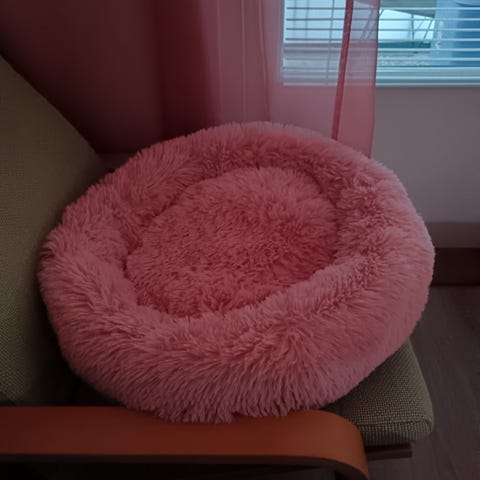 Teddy pyöreä kissanpeti, väri beige ja ruskea, pehmeä karvavuori sisällä, säädettävä kiristysnyöri. Materiaali pehmeä kangas ja karvavuori. Sopii kissoille mukavaksi lepopaikaksi.