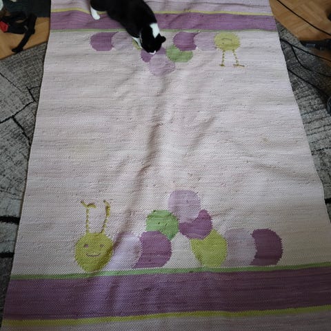 Myyntiin kuvan lasten kissamatto design by Erja Rasinmäki. Sama kuviointi molemmin puolin.