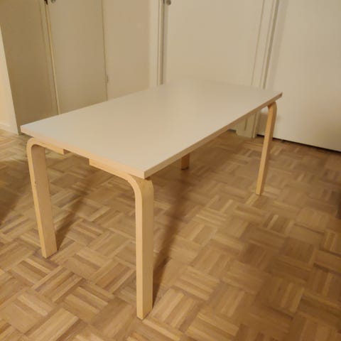 Klassinen Artek Aalto - lasten pöytä, jossa on punainen pintalevy ja koivurunko. Lapsilla ollut käytössä leikki- ja askartelupöytänä. Nyt on jäänyt pieneksi ja etsii uutta omistajaa. Pöydässä näkyy käytön jälkeä - pientä kulumaa pöytälevyllä, reunoissa ja jaloissa. Muuten hyvässä kunnossa.