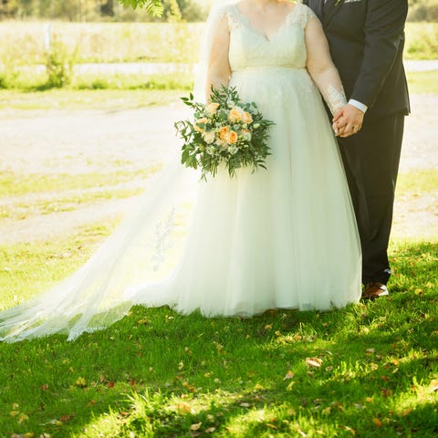 Mekko ostettu Lavemin hääpuku outletista (600€+valmishihat 50€). Ompelijan muokkaukset 120€ ja pesula 130€.
