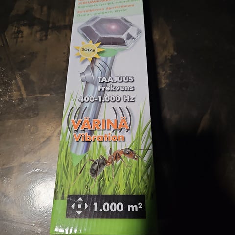 Aurinkokenno Myyrä Käärme Muurahaiset Myyrät Käärmet Jyrsiät Solar aurinkokennotoiminen puutarha piha autokatos pelto ulkoalueet Yleiskäyttöinen ilman kemikaaleja