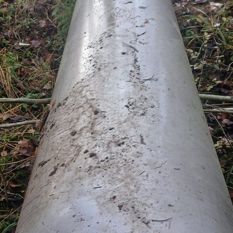 Halkaisija 11,5cm, pituus 56cm, seinämä 2mm, n. 2,3kg