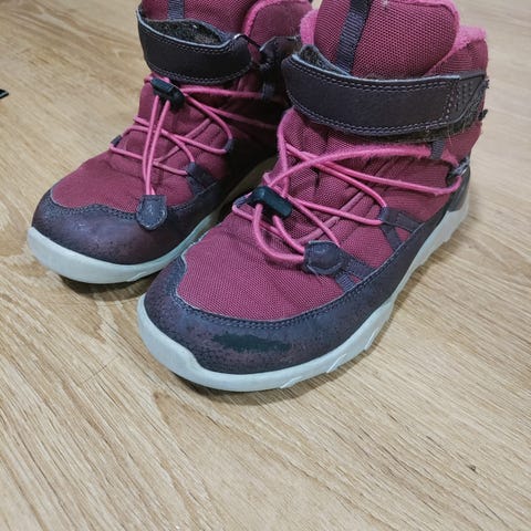 Välikausikengät koossa 33. Kiinnitykset toimii, kärjissä näkyy käytönjälkiä.