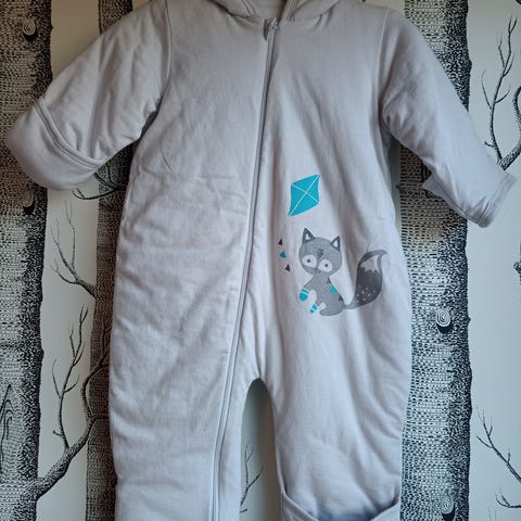 Vauvan kevytvanupuku, koko 70. Kärjekkäät käsissä ja jaloissa.