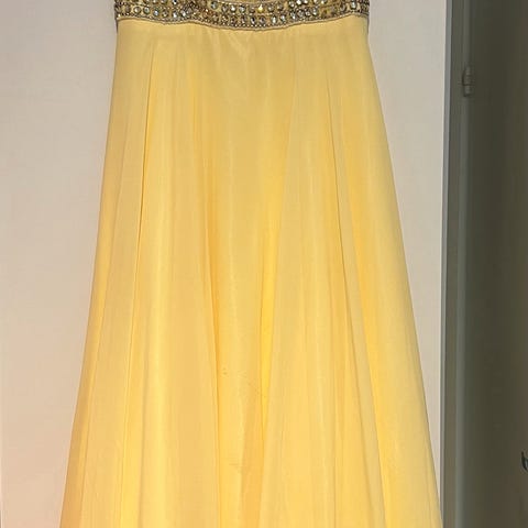 Myydään Christian Koehlert merkin kultainen vanhojentanssimekko. Mekkoa on käytetty yhden päivän ajan eli on hyvässä kunnossa. Ainoa näkyvä käytön jälki on olkaimissa joista on lähtenyt muutama strassi (näkyy kuvissa). Kokoa 40 ja vastaa noin kokoa M. Olen noin 163cm pitkä ja mekko lyhennettiin niin, että se oli vannehameenkin kanssa vähän liian pitkä, sopii siis varmasti vähän pidemmillekkin.