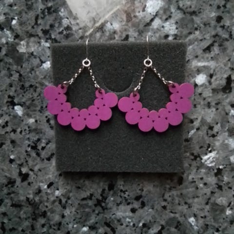 Kauniit korvakorut tummansininen/vaaleanpunainen, kotimaista koivuvaneria, tappikiinnitys. Uudet.