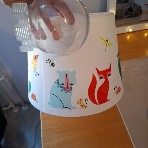 Lamppu ei sisälly mukaan, E27 kantanen lamppu sopii. Valaisimen halkaisija 25cm ja korkeus 23cm.
