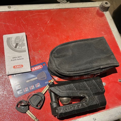 Uudenveroinen pari kertaa käytetty Abus levyjarrulukko.
