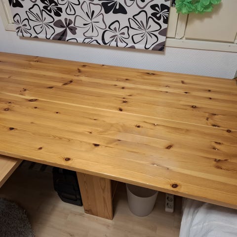 Myydään Lundian pöytätaso, jossa on kiinni 2 jalkaa. Voi kiinnittää esim.Lundian hyllyyn tai lipastoon.