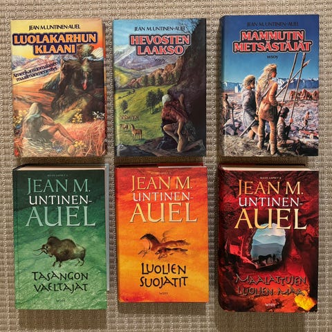 Myydään hyvkuntoiset Maan lapset koko kirjasarja 1-6. Jean M. Untinen-Auel. Kovakantiset. Kansipapereissa voi olla kulumaa. Itse kirjat siistit ja ehjät.