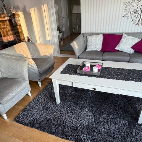 Myydään harmaat nojatuolit. Kankaissa haalistumaa ja kulumaa (kts kuvat). Kankaat ovat irroitettavat. Tuolien rungot ehjät ja tukevat.