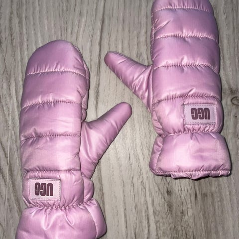 Vähän käytetyt ja uuden veroiset käsineet, joiden sisäpuoli on villaa ja ulkopuoli nahkaa.