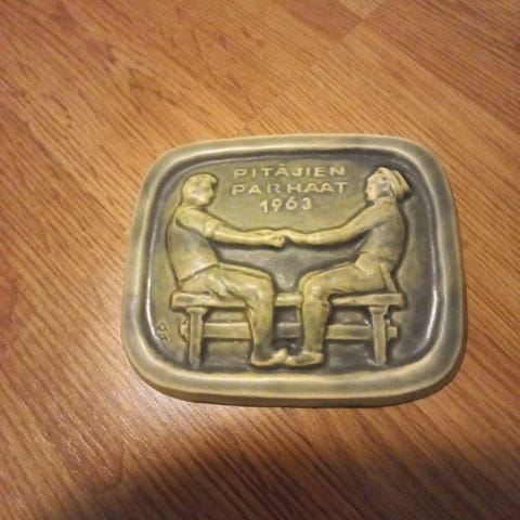 Arabia Vanha tehtaan portti koristelautanen sininen keramiikka